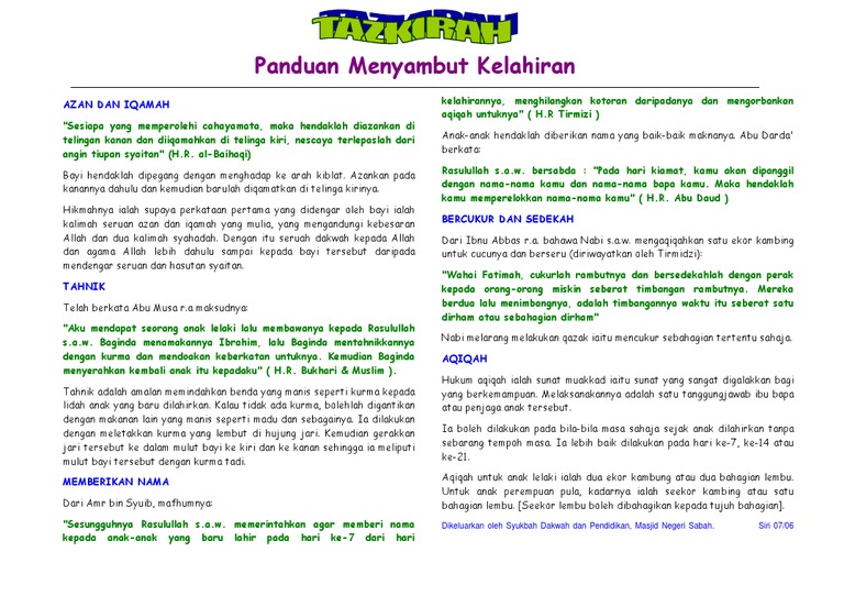 Al Quran Dan As Sunnah Peganganku Syariat Kelahiran