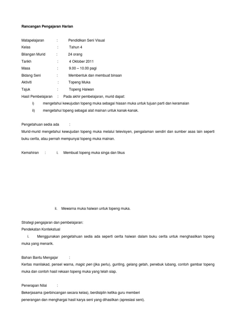 Rph Membentuk Dan Membuat Binaan Topeng